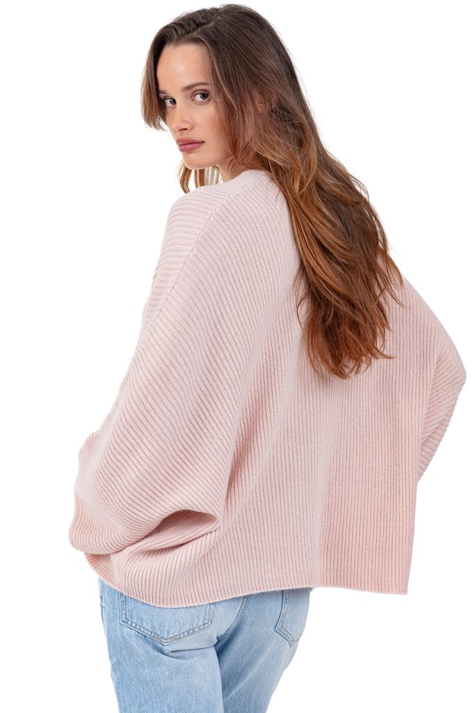 Soft and airy, the POLLY women’s jumper reinvents the poncho spirit in a luxurious, modern version. Crafted in 100% 2-ply baby alpaca, it stands out with its all-over ribbed knit, ultra-oversized cut, and round neck. Short or three-quarter sleeves add fluidity and comfort.